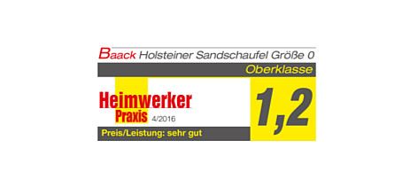Die Holsteiner Sandschaufel wurde im April 2016 von der renommierten Fachzeitschrift Heimwerker Praxis getestet und mit der Note 1,2 bewertet.